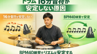 レッスン ドラムの16分音符が安定しない原因|BPM40練習でリズムが劇的に安定する方法