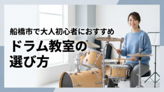 船橋市で大人初心者向けのドラム教室をお探しの方へ。教室選びで確認したいポイントを、通いやすさ・体験レッスン・料金・講師との相性などの観点から分かりやすく解説します。