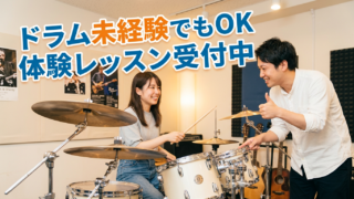 ドラム未経験でも体験レッスンは受けられます。スティックを持ったことがない初心者でも安心。体験レッスンの内容や、独学で挫折しやすい理由、正しい練習の順番をわかりやすく紹介します。