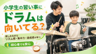 小学生の習い事にドラムは向いているのかを、初心者専門の現役プロドラマーがやさしく解説。リズム感、集中力、達成感、人見知りや飽きっぽさへの不安、教室選びのポイントまで保護者向けにわかりやすくまとめました。