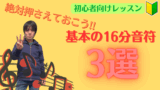 ここでの16分音符は1拍につき2打しか叩かない16分音符の形になります。ですので、休符を感じることがとても重要になります。休符を感じることができないとテンポが走ってしまいズレが生じます。