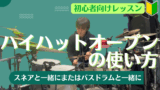 ハイハットオープンのサウンドはとても重要です。開けるだけ、閉めるだけの話ではありません。2枚のトップとボトムのシンバルが重なり合っている音をだすため、ほんの少ししか左足を浮かせません。少しだけ浮かせるときれいなハイハットオープンサウンドになります。音色の変化は、初心者が一気に上達したように感じられるポイントです。