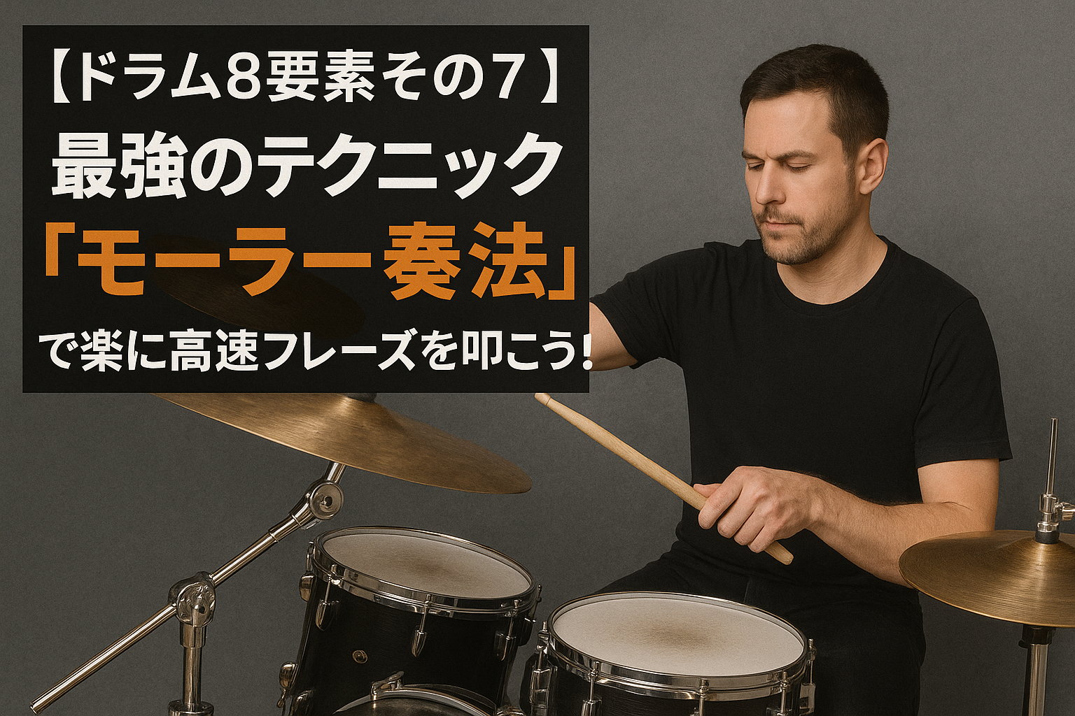 今回は7つ目のテーマとして、多くのドラマーが憧れる“テクニック”の部分、とくに効率的な動きでスピードと持久力を手に入れられる「モーラー奏法」について詳しくお話ししていきます。
