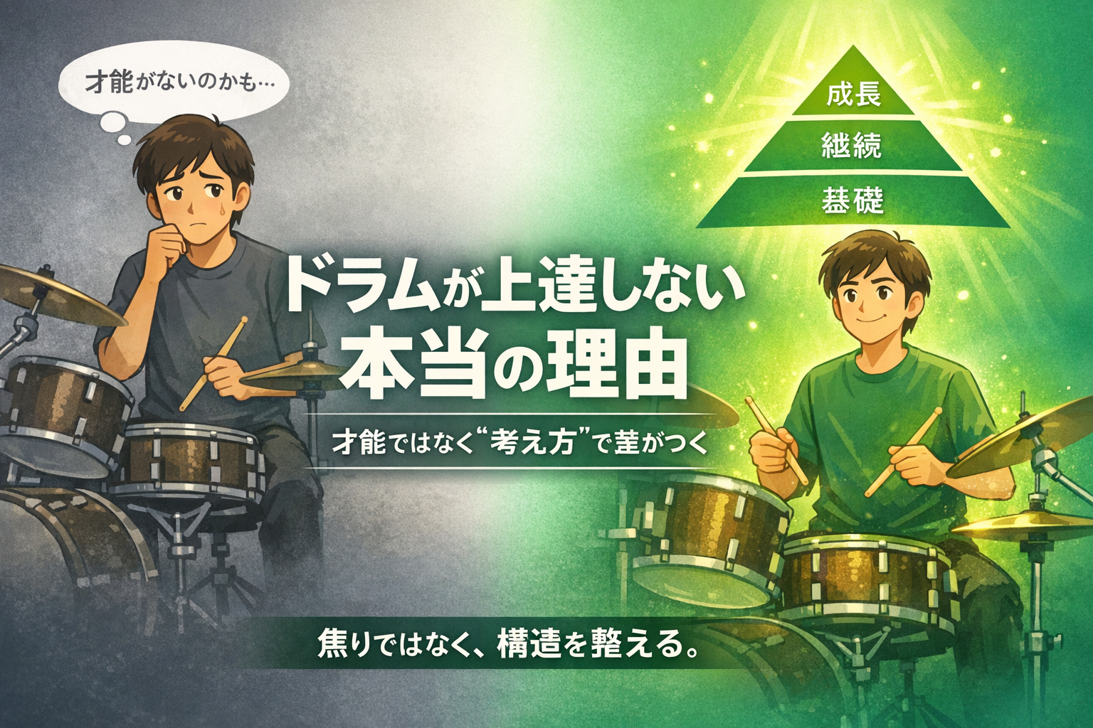 この記事では、これまで私が書いてきた思想系の記事をひとつにまとめながら、「ドラム 上達」に本当に必要な視点を、できるだけわかりやすくお伝えします。