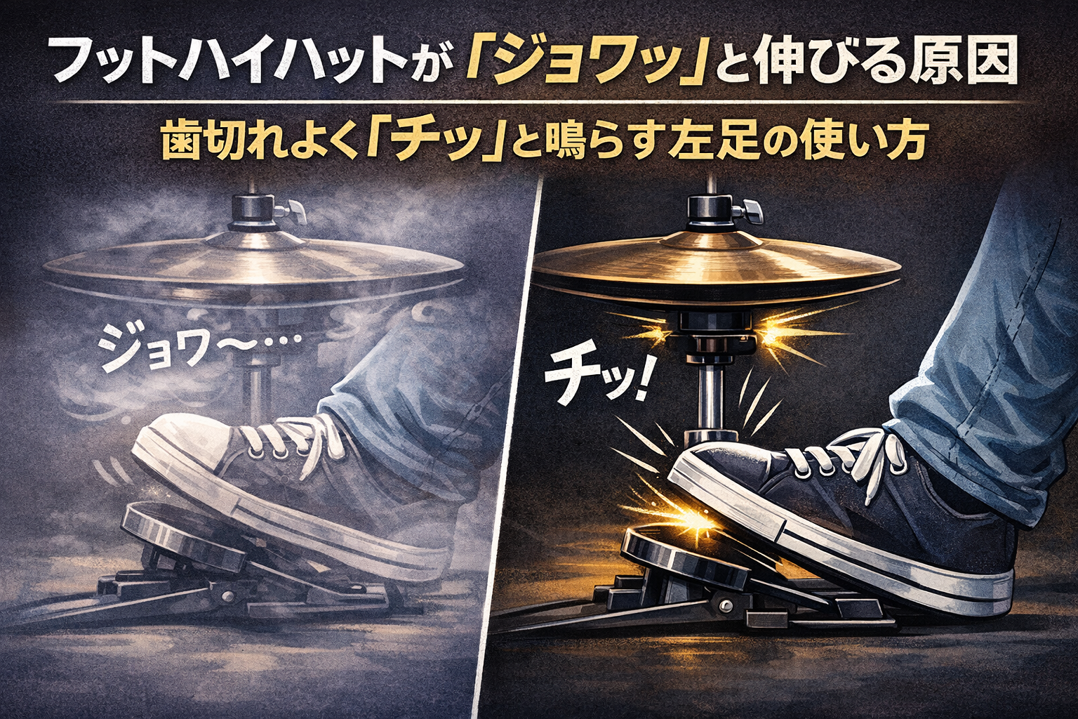 フットハイハットで歯切れの良い音を出すためには、