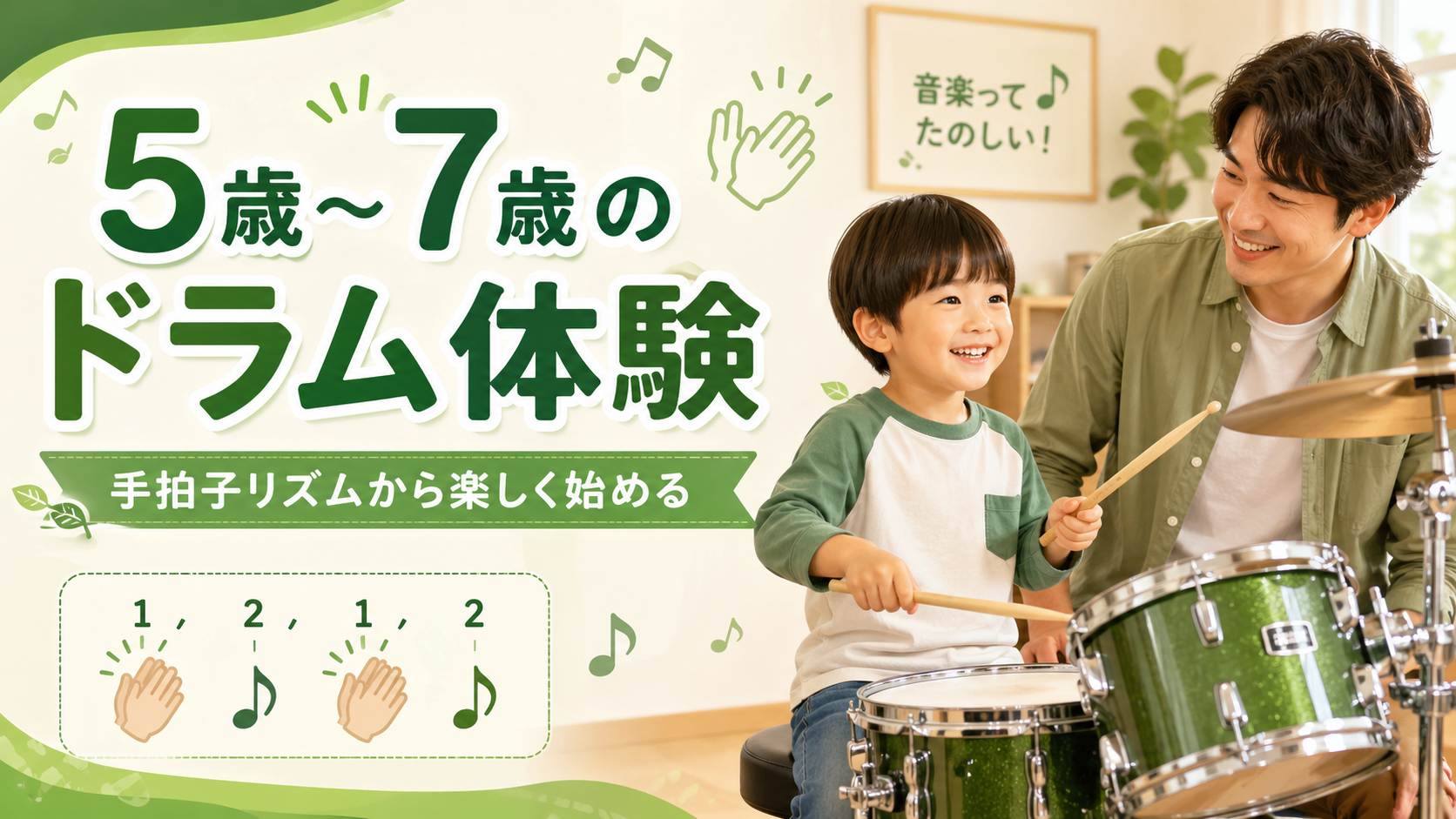この記事では、5歳〜7歳くらいのお子さま向けのドラム体験レッスンで、実際にどのようなことを行っているのかを、保護者の方にもわかりやすくご紹介します。