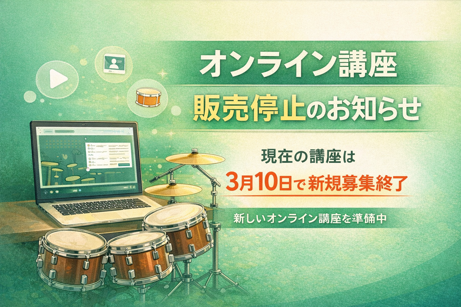 小学生から社会人まで通う船橋市のドラム教室です。個人レッスン(対面・オンライン両方可)に加え、講座+LINEサポート付きのドラム教室|千葉県船橋市の初心者のための川島広明ドラム教室