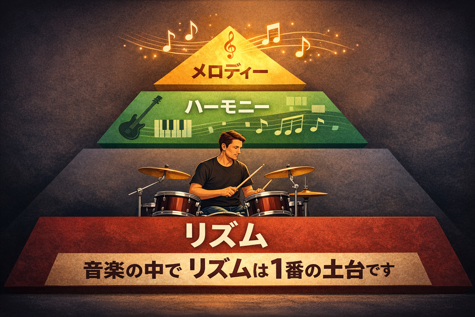 音楽の三要素の中で、最も土台となり、最も重要なのは「リズム」です。